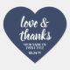 Liebe & Dank Navy Blue & White Simple Script Herz-Aufkleber