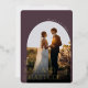 Elegante Hochzeitskarten mit einem Single-Hochzeitsgrau oder einem portraitorientierten Hochzeitskartentchen in einem einzigartigen gewölbten Layout. "Mit Liebe und Dankbarkeit" überlagert sich in der Serifenschrift mit Goldfolie, die Ihre Namen seitlich gebogen. Fügen Sie eine persönliche Nachricht und eine Unterschrift auf der Rückseite zusammen mit einem zusätzlichen Foto hinzu.