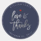 Liebe+Danke, Modernes Script Silver+Navy Blue Runder Aufkleber