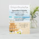 Ihre Liebe ist so tief wie das Meer, und diese schöne Hochzeitseinladung zeigt es. Ein Hochzeitskuchen aus Sand, umgeben von Hochzeitsblumen und mit Seesternen überragt, liegt am Strand am Ozean in diesem einzigartigen, strandbezogenen Einladungs-Design. Die ideale Wahl für eine Hochzeit in Urlaubsort.