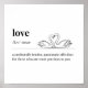 Dieses Poster enthält eine kraftvolle Definition des Wortes "Liebe". Über der Definition fotografiert, sind zwei Schwäne, die sich die Form eines Herzens zu bilden. Ideal für alle Veranstaltungen und Veranstaltungen, die die Liebe zwischen zwei Personen feiern: Hochzeiten, Jubiläen, Valentinstag und vieles mehr. Auch in weiß auf schwarz erhältlich.