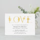 Eine elegante, blumengeschmückte Party-Einladung mit "LIEBE" in Goldfolienprägung, die mit winzigen Blume geschmückt ist. Personalisieren Sie sich mit Ihren Verlobung Feierlichkeiten Details unten.