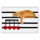 Lang haarige orangefarbene Katzenklatsche Nickerchen auf Noten aus dem roten Herz, die die Lieben zeigen, selbst wenn schlafende Katzenliebhaber Valentinstag oder einfach Liebe Grußkarte