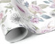 Dieses Verpackungspapier weist ein sich wiederholendes Muster der Lavendelfischer-Rose mit der Liebe des Wortes auf