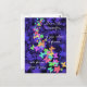 Farbenfrohe Postkarte mit hellen Schmetterlingen auf blühendem blauen Hintergrund...hat ein schönes Zitat über Liebe und Schmetterlinge vorne.