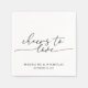 Eine moderne, schwarz-weiße Hochzeitsserviette mit "Cheers to Liebe" in eleganter Kalligraphie, personalisiert mit den Namen des Ehepaares und dem Hochzeitsdatum. Dieses raffinierte und dennoch minimalistische Design eignet sich perfekt für Hochzeiten, Probe-Dinners, Verlobungsfeiern und Brautpartys. Die klassische Schrift und die raffinierte Typografie sorgen für eine stilvolle Touch, um Cocktails, Toasts und Empfang-Tischdekoration zu genießen. Ob für ein formelles Ereignis in der Schwarzen Krawatte oder eine schicke, moderne Ansammlung, diese Servietten bereichern das Fest mit zeitloser Eleganz.