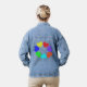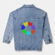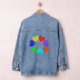 Diese phantastische Denim-Jacke zeichnet sich durch ein digital kreiertes Bild eines Kreises von Lieben-Herzen aus. Jedes Herz ist eine andere Farbe des Regenbogens. Rot, orange, gelb, grün, blau, indigo und violett sind eine lustige Möglichkeit, Ihre Liebe für einen Freund, eine Freundin, einen Ehemann oder eine Ehefrau zu äußern.