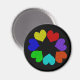 Dieser Magnet zeichnet sich durch ein digital erstelltes Bild eines Herzkreises der Liebe aus. Jedes Herz ist eine andere Farbe des Regenbogens. Rot, orange, gelb, grün, blau, indigo und violett sind eine lustige Möglichkeit, Ihre Liebe für einen Freund, eine Freundin, einen Ehemann oder eine Ehefrau zu äußern. Der Hintergrund ist schwarz, um eine maximale Wirkung zu erzielen.