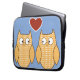 Das Design von zwei Eulen stehend mit einem roten Liebe Herz zwischen ihnen auf einem himmelblauen Hintergrund. Niedliches und eigenartiges Cartoon-Design inspiriert durch Liebe und Freundschaft.