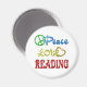 Ein Friedenszeichen, Herz und die Worte - Peace Liebe Reading, ist eine großartige Möglichkeit für einen Lehrer oder Bibliothekar, das Lesen zu fördern. Viel Spaß mit diesem glänzenden Retro-Design.