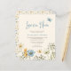 Elegante botanische Blume und Schmetterlinge Frühjahrsgärten Wildblumen erschwingliche Braudusche Einladung mit modernen staubblauen Kalligraphie-Skript.