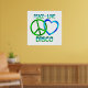 Disco-Liebhaber können ihre Gefühle mit diesem lustigen Retro-Design mit einem Friedenszeichen, Herz und die Worte - Peace Liebe Disco.