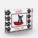 Dieser Foto ist ideal, um ein Foto von Ihnen als Pelzkind anzuzeigen. Das Design besteht aus schwarzen Hundepaws mit dem Wort "Liebe" in jeder Pfote. Das wäre ein wunderbares Geschenk für einen Hundeliebhaber oder Hundebesitzer. Um diesen Fotoblock noch besonders zu gestalten, kann er personalisiert werden, indem Sie eigene Texte und Fotos hinzufügen.
