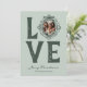 Einfache, grüne Weihnachtskarte mit dem Wort "Liebe", wobei Ihr geschätztes Foto das "O" ersetzt. Set in einem skizzierten Bilderrahmen, erweitern Sie Ihre Liebe und Frohe Festtage, während Sie die Karte mit "Frohe Weihnachten und Ihren Namen" umarmen. Es bietet Nostalgie und Freude und ist das perfekte Weihnachtsmemento für Ihre Lieben.
