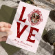 Einfache Weihnachtskarte in Rosa und Rot, die das Wort "Liebe" enthält, wobei das Foto Ihrer Familie das "O" ersetzt. Set in einem skizzierten Bilderrahmen, erweitern Sie Ihre Liebe und Frohe Festtage, während Sie die Karte mit "Frohe Weihnachten und Ihren Namen" umarmen. Es bietet Nostalgie und Freude und ist das perfekte Weihnachtsmemento für Ihre Lieben.