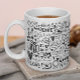 Schwarze Vintage Hand Drawn Valentine's Day Liebe Doodles Kaffee Tasse. Diese niedliche Kaffee-Tasse ist mit verschiedenen Lieben Zitaten, Pfeilen, Herzen und Ikonen gestaltet. Perfektes Geschenk für den Valentinstag, Jahrestage oder Feiern.