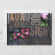 Foto verschiedener Wörter und Symbole in Verbindung mit der Liebe in Letterpress Holz und Metallart mit Rosenbuds