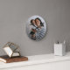 Moderne, elegante Uhr mit Ihrem Lieblings-Foto über Wirble Kalligraphie-Script-LIEBE und Ihren eigenen Text unten.
