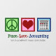 Das Bürofenster des niedlichen Buchhalters hängt mit dem Firmennamen oder dem Firmennamen zusammen. Die Dekoration der Buchhalterin umfasst ein Friedenszeichen, ein Herz und einen Taschenrechner. Peace Liebe Accounting für ein CPA.