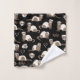 Handgezeichnet Frettchen, Xoxo und Herzen Muster Bad Handtuch Set, schwarzer Hintergrund.