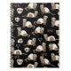 Handgezeichnet Frettchen, Xoxo und Herzen Muster Notebook, schwarzer Hintergrund.