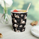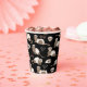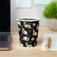 Handgezeichnet Frettchen, Xoxo und Herzen Muster Papier Becher, schwarzer Hintergrund.