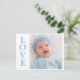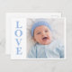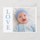 Adorable blaue L-O-V-E Typografie mit Ihrem persönlichen Foto zum Geburtstag Postkarte, Geburtsankündigung, denken Sie an Sie Postkarte.