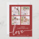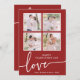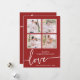 Elegant und stilvoll präsentiert sich diese Valentine's Day Card mit einer Foto-Collage oder einem 4-Familien-Foto mit einer "Liebe" in einem angesagten handgeschriebenen Kalligrafieschrift auf rotem Hintergrund. Die Rückseite der Karte enthält Text zum Hinzufügen einer persönlichen Nachricht.