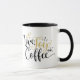 Feiern Sie die magische und festliche Urlaubssaison mit unseren maßgeschneiderten Tasse. Unser modernes Weihnachtskaffeemodell zeichnet sich durch unser typografisches Design aus, das "Liebe, Joy & Coffee" in einem lustigen Skriptstil in Schwarz und Imitat-Gold-Glitzer entworfen wurde. Die Tasse wird mit der typografischen Meldung auf beiden Seiten der Tasse erstellt. Diese Tasse ist ein ausgezeichnetes Weihnachtsgeschenk für alle Kaffeeliebhaber auf Ihrer Weihnachtsgeschenkliste. Alle Kunstwerke in dieser trendigen Liebe, Freude und Kaffee-Tasse sind originelle Kunstwerke der Moodthologie.