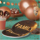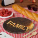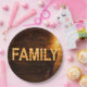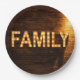 Ideal, um die Familie oder die Familie in Ihrem Leben zu lieben. Familie in Lichtern künstlerisch an einer Ziegelwand gemacht.