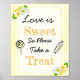 Gelbe florale Daffodil Frühling oder Sommer Hochzeit Bonbonbuffet Zeichen.
