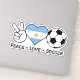 Dieser Vinyl-Aufkleber ist ein großartiges Geschenk für einen argentinischen Fußballfan. Das Design besteht aus einem Friedensschild, einer argentinischen Fahne in Herzform und einem Fußball mit den Worten "Peace Liebe Soccer".