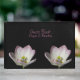 Ein einfaches und dennoch elegantes Gästebuch mit individuellem Text. Dieses schöne Buch ist schwarz mit rosa Text und zwei rosa Blüten am Ende des Buches. Finden Sie mehr passende Produkte in der Floral in Liebe Hochzeitskollektionen.