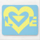 Ein grafisches Logo-Design, maßgeschneidert. LIEBE in gelb auf blau.