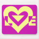 Ein grafisches Logo-Design, maßgeschneidert. LIEBE in Gelb auf lila.