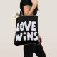 Dieses Design zeigt die Phrase Liebe gewinnt mit einem bunten Regenbogenherz.