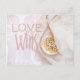 Adorable Hochzeit PostCard mit einer Fotografie von mit White Lace und Perlen und das Sprichwort "Liebe gewinnt" Dies ist das beste und Nummer 1 Design für Ihren Speaker Tag.