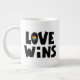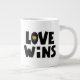 Dieses Design zeigt die Phrase Liebe gewinnt mit einem bunten Regenbogenherz.