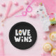Dieses Design zeigt die Phrase Liebe gewinnt mit einem bunten Regenbogenherz.
