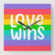 Dieses Kunstwerk zeigt einen bunten Regenbogen mit den Worten Liebe gewinnt.