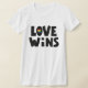 Dieses Design zeigt die Phrase Liebe gewinnt mit einem bunten Regenbogenherz.