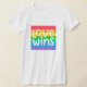 Dieses Kunstwerk hat einen bunten Regenbogen mit den Worten Liebe gewinnt.