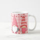 Ein niedliches Paar rosa Zwerge auf rosa kariertem Hintergrund und glitzernde rote Herzen