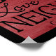 Schrift von den Galaten 5:14. Wenn wir nach den Worten der Liebe leben, Gott, Liebe, dein Nächster, erfüllen Sie alle, die Gott uns gebietet. Schwarze Wörter auf einem roten Holzplanken, die auf einem schwarzen Rahmen hintereinander aussehen. Originelles Design von Christie Black von Kreationen aus dem Herzen.