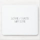 Einfaches Design mit "LIEBE / HATE MY LIFE"-Text in schwarz gedruckt - denn manchmal haben wir absolut Liebe unser Leben und manchmal ist es das Gegenteil.