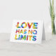 Dieses Design enthält den Satz "Liebe hat keine Grenzen", gebildet in farbenfrohen Regenbogenfarben.