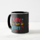 Niedliche und farbenfrohe Hunde Design Tasse mit rot, gelb und blau mit Pfotenabdruck liest Liebe Hat Four Paws! Der Hundeliebhaber wird diese niedliche Liebe hat vier Paws Hund Tasse Liebe!