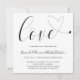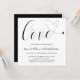 Typografy Wedding Invitation mit dem Wort "Liebe" in schwarzer Kalligrafie mit einem Herzschlag am Ende, über einen weißen Hintergrund zusammen mit Ihren Namen in einer Handschrift. Die schlichte und minimalistische Anordnung und die viel offene Fläche verleihen diesem Design ein modernes Ambiente und die kalligraphische Schrift und das Herz geben ihm eine romantische Drehung.