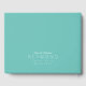 Ein Buch, in dem Besucher oder Gäste eines Events (wie z.B. Ihre Hochzeit) ihre Namen unterschreiben... Ihre eigenen Namen in einem dünnen Schriftart-Stil auf aquamarinem blauen Hintergrund mit dem Bild eines kleinen Herzens.. ein elegantes Element für Ihre Erinnerungen des "besten Tages aller Zeiten".