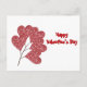 Ein wunderschön illustrierter Baumzweig erstreckt sich anmutig über die Karte und ist mit zarten, herzförmigen Blätter in Rot geschmückt, die sanft in der Brise schweben.